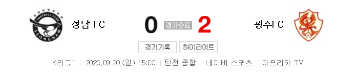 국내축구 - 성남 VS 광주 2020 K리그 22라운드 하이라이트 (2020년 9월 20일)