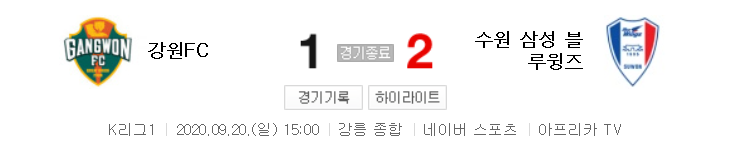 국내축구 - 강원 VS 수원 2020 K리그 22라운드 하이라이트 (2020년 9월 20일)