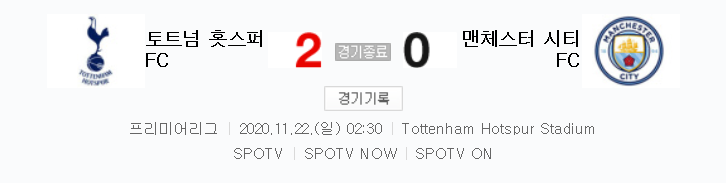 (토트넘 핫스퍼 스타디움) 경기 결과 : 승리팀 - 토트넘 홋스퍼 FC (홈팀)