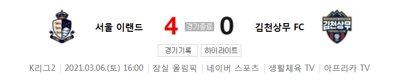 서울 이랜드 대 김천 상무 하이라이트
