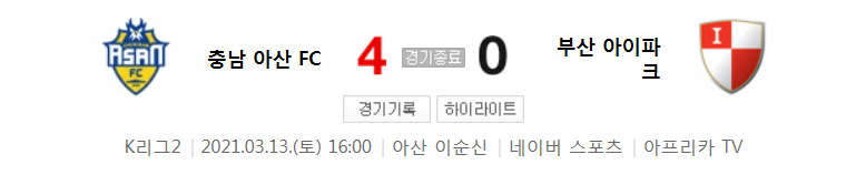 K리그2 / 국내축구 - 충남 아산 VS 부산 (4 - 0) 2021시즌 3라운드 하이라이트 (2021년 3월 13일)