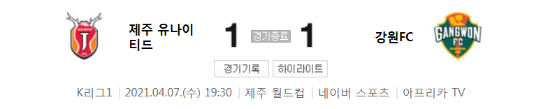 국내축구 - 제주 VS 강원 2021 K리그 8라운드 하이라이트 (2021년 4월 7일)