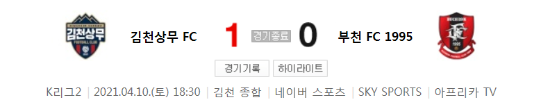 K리그2 / 국내축구 - 김천상무 VS 부천 (1 - 0) 2021시즌 6라운드 하이라이트 (2021년 4월 10일)