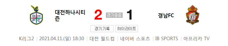 K리그2 / 국내축구 - 대전 VS 경남 (2 - 1) 2021시즌 6라운드 하이라이트 (2021년 4월 11일)