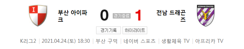 K리그2 / 국내축구 - 부산 VS 전남 (0 - 1) 2021시즌 8라운드 하이라이트 (2021년 4월 24일)
