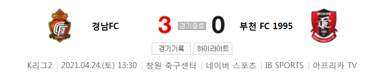 K리그2 / 국내축구 - 경남 VS 부천 (3 - 0) 2021시즌 8라운드 하이라이트 (2021년 4월 24일)