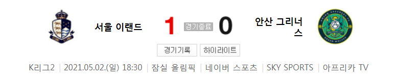 경기 결과 : 승리팀 - 서울 이랜드 (홈팀)