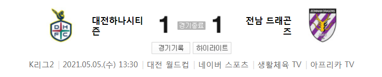 K리그2 / 국내축구 - 대전 VS 전남 (1 - 1) 2021시즌 10라운드 하이라이트 (2021년 5월 5일)