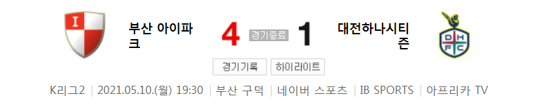 경기 결과 : 승리팀 - 부산 아이파크 (홈팀)