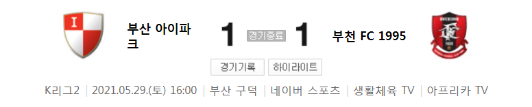 K리그2 / 국내축구 - 부산 VS 부천 (1 - 1) 2021시즌 14라운드 하이라이트 (2021년 5월 29일)