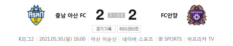 K리그2 / 국내축구 - 충남 아산 VS 안양 (2 - 2) 2021시즌 14라운드 하이라이트 (2021년 5월 30일)