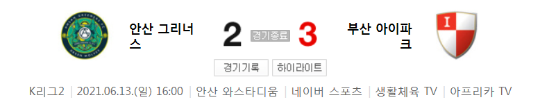 K리그2 / 국내축구 - 안산 VS 부산 (2 - 3) 2021시즌 16라운드 하이라이트 (2021년 6월 13일)