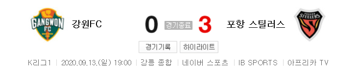 국내축구 - 강원 VS 포항 2020 K리그 20라운드 하이라이트 (2020년 9월 13일)