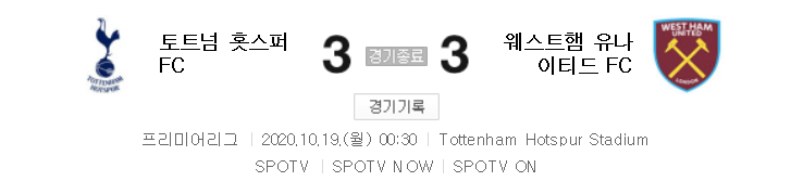 토트넘 (3골) : 손흥민(47초) - 해리 케인(멀티골 8분 - 16분)
