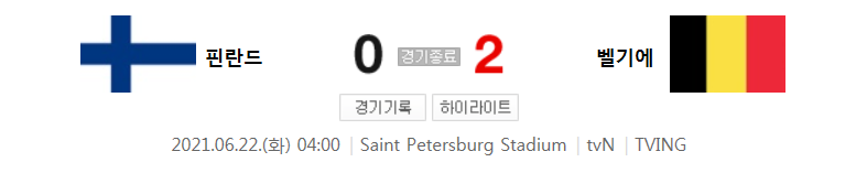 경기 결과 : 0 : 2 - 벨기에 승리