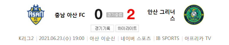 K리그2 / 국내축구 - 충남 아산 VS 안산 (0 - 2) 2021시즌 10라운드 하이라이트 (2021년 6월 23일)