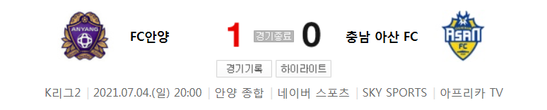 경기 결과 : 승리팀 - FC안양 (홈팀)
