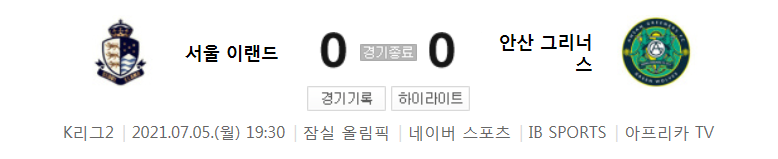 K리그2 / 국내축구 - 서울 이랜드 VS 안산 (0 - 0) 2021시즌 19라운드 하이라이트 (2021년 7월 5일)