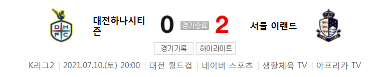 K리그2 / 국내축구 - 대전 VS 서울 이랜드 (0 - 2) 2021시즌 20라운드 하이라이트 (2021년 7월 10일)