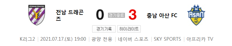 K리그2 / 국내축구 - 전남 VS 충남 아산 (0 - 3) 2021시즌 21라운드 하이라이트 (2021년 7월 17일)