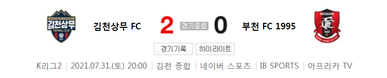 K리그2 / 국내축구 - 김천상무 VS 부천 (2 - 0) 2021시즌 23라운드 하이라이트 (2021년 7월 31일)