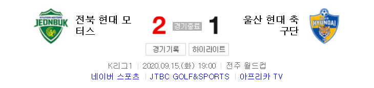 경기 결과 : 승리팀 전북 현대 모터스 (홈팀)