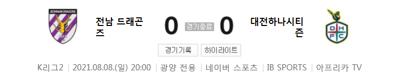 K리그2 / 국내축구 - 전남 VS 대전 (0 - 0) 2021시즌 24라운드 하이라이트 (2021년 8월 8일)