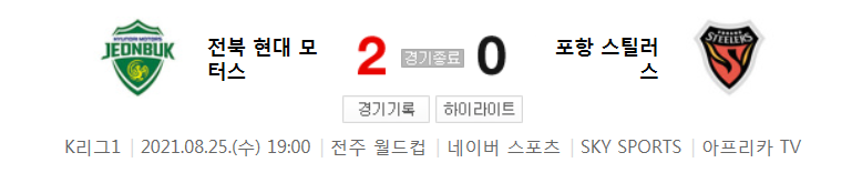 국내축구 - 전북 VS 포항 2021 K리그 27라운드 하이라이트 (2021년 8월 25일)