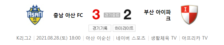K리그2 / 국내축구 - 충남 아산 VS 부산 (3 - 2) 2021시즌 27라운드 하이라이트 (2021년 8월 28일)