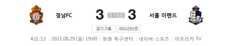 K리그2 / 국내축구 - 경남 VS 서울 이랜드 (3 - 3) 2021시즌 27라운드 하이라이트 (2021년 8월 29일)