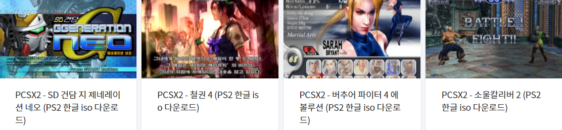 소울칼리버 2 : 남코의 대전격투 (FTG) 게임 Soulcalibur II ソウルキャリバーツー 기종 : 플레이 스테이션 2 (PS2) 게임 실행기 : PCSX2 ALL 한글 게임 다운 더보기